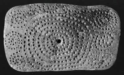 En la espiral central se observan 243 orificios, mientras la suma del resto de las espirales denota otros 122 orificios. Un fácil cálculo de los orificios totales nos da la suma de 365, exactamente la duración de un año. Por otro lado en la zona siberiana de Mal´ta la duración del invierno se prolonga justamente durante 243 días, por 122 del verano. Un aspecto importante a considerar y que refuerza la consistencia de la interpretación calendárica de la placa de Mal´ta es el ciclo de gestación del reno, básico en la dieta de la zona por su importante aportación calórica que ayuda a combatir las bajas temperaturas, siendo 243 días.